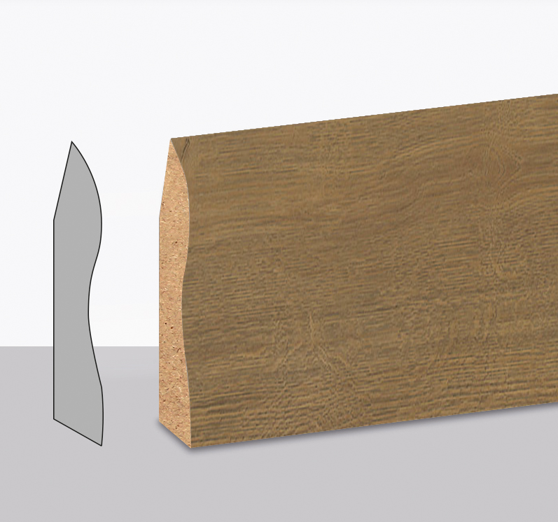 VarioClic 6 - 8 cm Sockelleistenkollektion, resistent gegen punktuelle Stöße und Flecken, leicht zu reinigen, trägt zur Gewährleistung der Integrität der Dekoration bei, indem es Arbeitslücken im Parkett schließt.