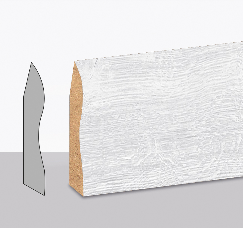 VarioClic 6 - 8 cm Sockelleistenkollektion, resistent gegen punktuelle Stöße und Flecken, leicht zu reinigen, trägt zur Gewährleistung der Integrität der Dekoration bei, indem es Arbeitslücken im Parkett schließt.