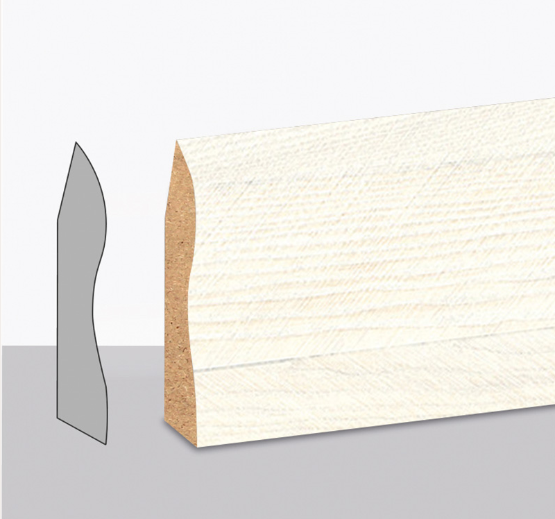 VarioClic 6 - 8 cm Sockelleistenkollektion, resistent gegen punktuelle Stöße und Flecken, leicht zu reinigen, trägt zur Gewährleistung der Integrität der Dekoration bei, indem es Arbeitslücken im Parkett schließt.