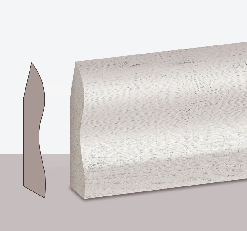 VarioClic 6 - 8 cm Sockelleistenkollektion, resistent gegen punktuelle Stöße und Flecken, leicht zu reinigen, trägt zur Gewährleistung der Integrität der Dekoration bei, indem es Arbeitslücken im Parkett schließt.